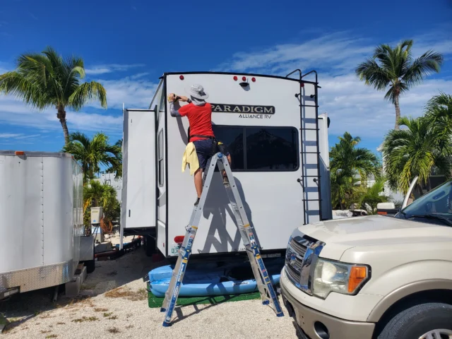 Visit our Contacts to learn more about our comprehensive mobile RV detailing solutions designed specifically for the Florida Keys environment.